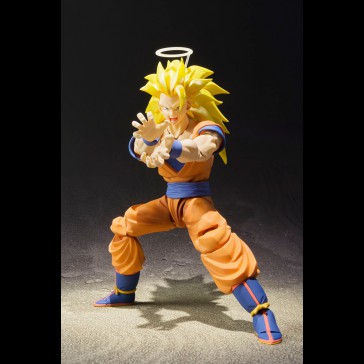Five years after being offered as a web exclusive, Super Saiyan 3 Son Goku joins S.H.Figurarts with an all new sculpt and tons of new features! It looks great when displayed with the Tamashii EFFECT Energy Aura Yellow Ver. (sold separately). The highly posable figure includes five pairs of optional hands, three optional expressions, and a custom stand.
