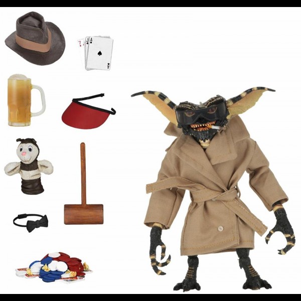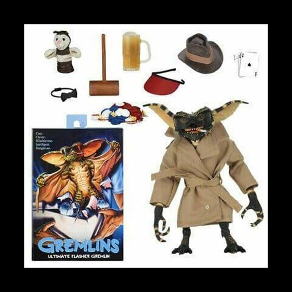 Neca presenta una nuova action figure del Flasher Gremlin! La figura è articolata e dispone di un soprabito in vera stoffa e di altri accessori: cappello, boccale di birra, carte, martello e altro ancora!