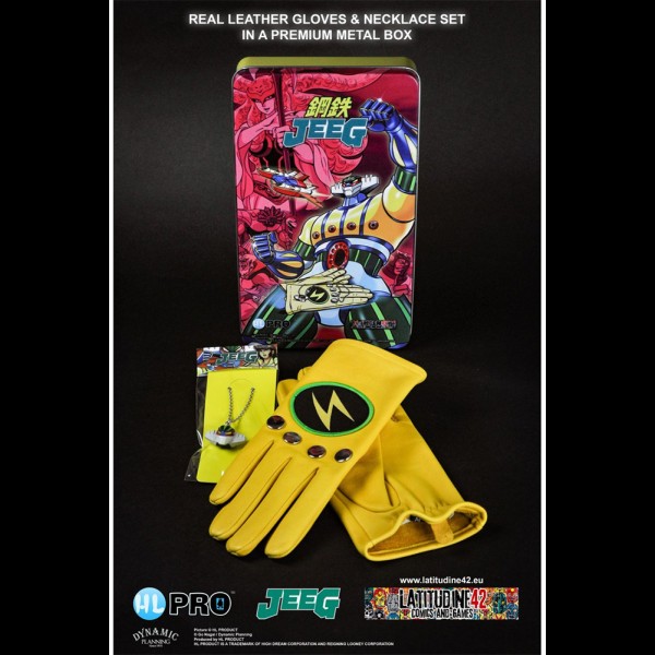 Esclusivo Metal Box set con i guanti e la collana di Hiroshi Shiba direttamente dal cartone animato Jeeg Robot D'Acciaio. Il tutto contenuto in uno splendido Metal Box: unico ed originale.