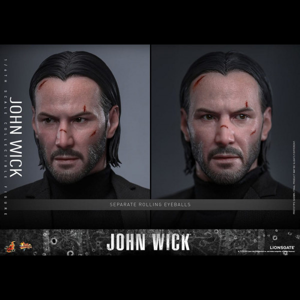 Sideshow e Hot Toys sono orgogliose di presentare la statuetta da collezione John Wick in scala 1/6, realizzata meticolosamente con il leggendario sicario. L'action figure di John Wick presenta una testa di nuova concezione con applicazioni di vernice rovinate dalla battaglia e occhi roteanti separati, completata da un'acconciatura meticolosamente scolpita e tirata indietro. Con dodici mani intercambiabili, dai pugni e gesti di comando all'impugnatura della tuta e della pistola, questa statuetta consente azioni dinamiche e pose espressive.