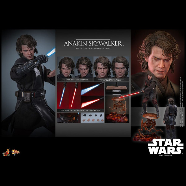 L'abbigliamento consumato di Anakin riflette i suoi ultimi momenti prima di diventare Vader. Il set include un tabarro, tuniche esterne e interne, una cintura portaoggetti con porta-elsa per spada laser e tasche, un paio di pantaloni e stivali alti. Include inoltre nove mani intercambiabili, tra cui mani a pugno, mani rilassate, mani che impugnano la spada laser e molteplici mani gestuali che usano la Forza; ogni mano consente di ricreare dinamicamente le scene chiave. Un'elsa per spada laser e un'elsa per spada laser illuminata a LED illuminano il suo conflitto interiore, con varie lame intercambiabili rosse e blu per reimmaginare il suo duello finale o la sua trasformazione. A completare la figura, una base diorama ispirata a Mustafar, raffigurante un droide panoramico con braccia articolate ed effetti di lava, che cattura perfettamente l'intensità incandescente dell'ambientazione.