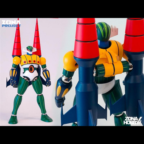 Il modello è n metallo e plastica alto 16.5cm ed accessoriato di due mani intercambiabili, missili perforanti, bazooka e basetta espositiva. Inoltre, come tributo al vintage, c`è anche il porta missili da agganciare alla schiena del robot.