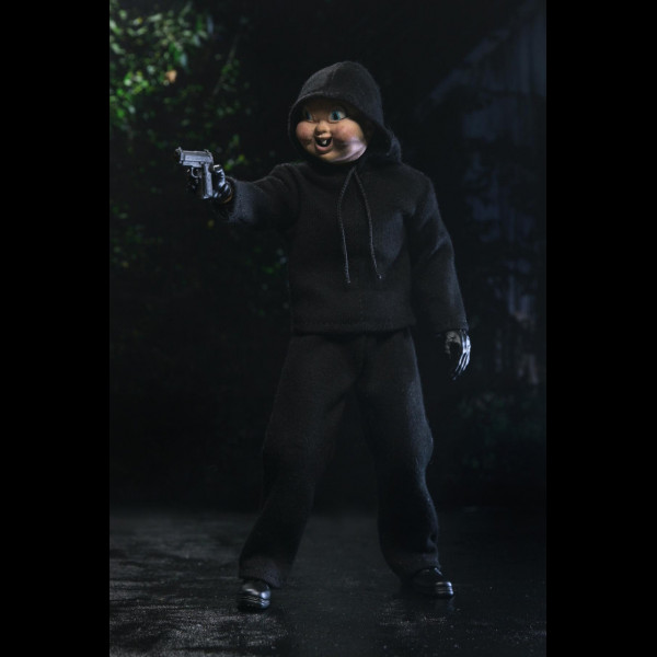 Non c’è nulla di carino o innocente in questo spietato assassino. Vestita con abbigliamento in tessuto sartoriale ispirato alle linee di giocattoli vintage, questa action figure completamente articolata in scala 8 pollici include maschere, teste e mani intercambiabili, coltelli da cucina, mazza da baseball, mazza, cupcake di compleanno e pistola. Fornita in una confezione con finestra pensata per i collezionisti.