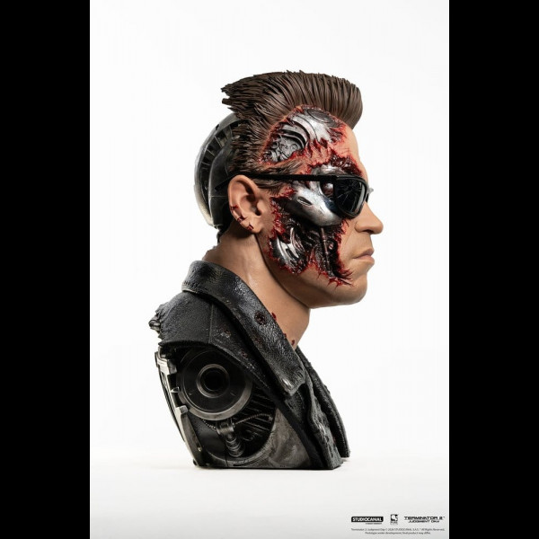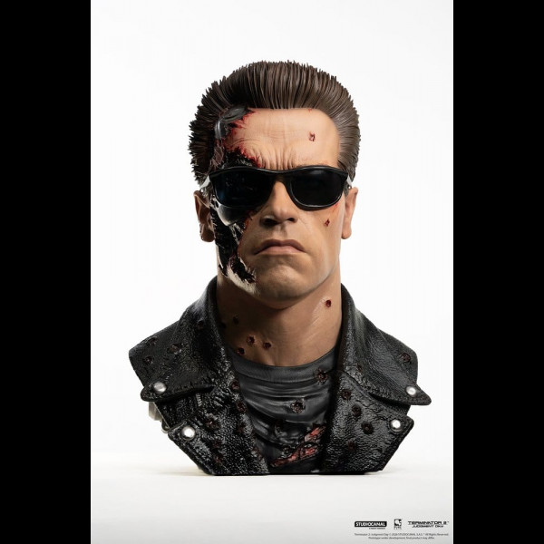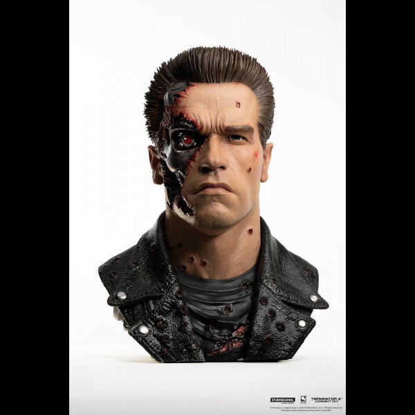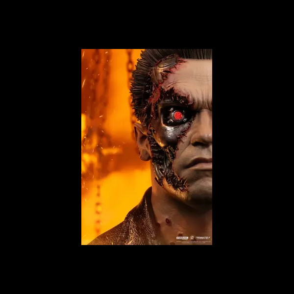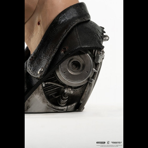 Un pezzo centrale di grande impatto che immortala il T-800 nella sua forma più iconica e segnata dalla battaglia.