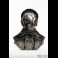 Ogni dettaglio racconta la storia di uno scontro implacabile: dalle ferite da proiettile e dalla pelle dilaniata che espone i componenti meccanici, agli occhiali distrutti e agli abiti insanguinati. L’occhio destro si illumina sinistramente con un LED rosso, dando vita alla fredda precisione della macchina tra le cicatrici della guerra.