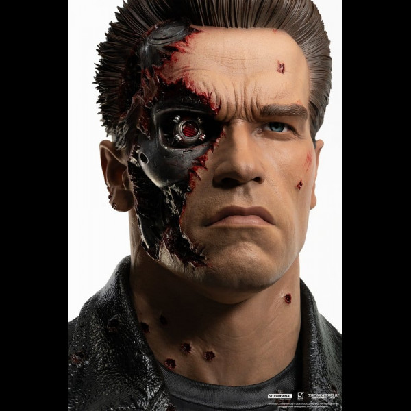 Scultura iper-dettagliata del T-800 con le fattezze di Arnold Schwarzenegger