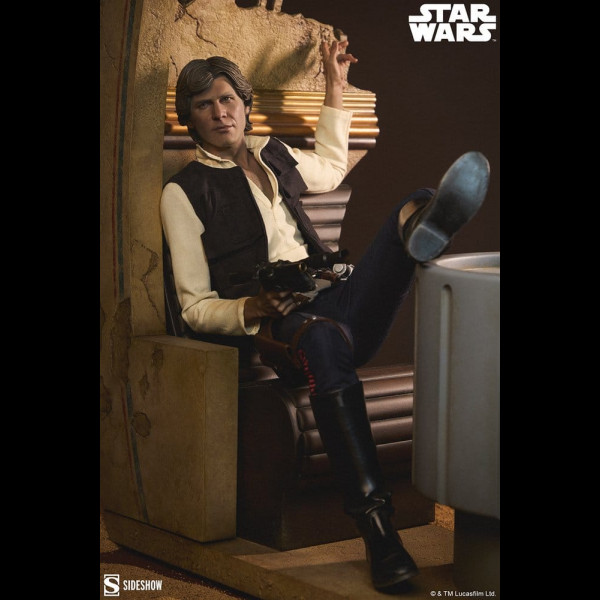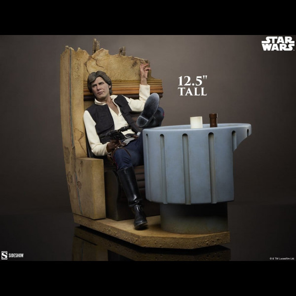 Sideshow presenta la Figura in Formato Misto Premium di Han Solo™: Sorry About the Mess. Questo oggetto da collezione con licenza ufficiale Star Wars™ rappresenta un'immagine di sicurezza sfrontata e maliziosa.