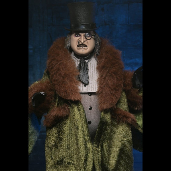 Dall'indimenticabile "Batman Returns" di Tim Burton, uscito nel 1992, arriva questa action figure clothed del Pinguino! La figura è molto somigliante a Danny DeVito, è in scala 8" (altezza circa 20 cm), ed è dotata di abiti in vera stoffa, di cappello, mani intercambiabili, monocolo e altro ancora. Arriva in un bel box a tema.