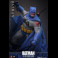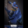 Il costume grigio consumato dalla battaglia è finemente confezionato in tessuto elastico, completo di strappi realistici e applicazioni di vernice sanguigna. Un mantello blu con fili metallici e usurato scorre dietro di lui, mentre la cintura multiuso, i guanti sugli avambracci e gli stivali presentano tutti applicazioni di vernice sanguigna. La figura è inoltre dotata di un cappuccio senza maschera che può essere attaccato al corpo con la scultura della testa di Bruce Wayne, consentendo di replicare l'aspetto senza cappuccio per uno stile di esposizione alternativo. Armato per la guerra, Batman è dotato di quattro Batarang, un Batarang attaccato a una corda e un fucile. La figura è completata da un supporto espositivo appositamente progettato.