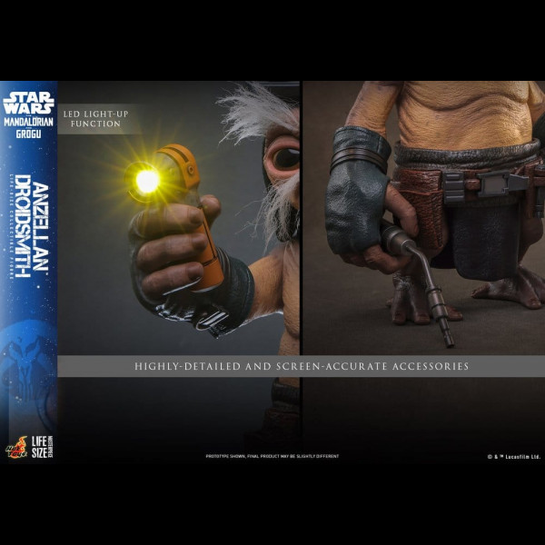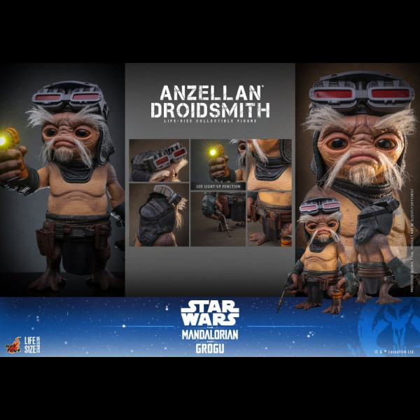 Renowned for their diminutive stature but immense skill in droid repair and reprogramming, the Anzellans have captured the hearts of Star Wars fans with their humorous personalities and technical wizardry. Though small in size, these tiny mechanics play a crucial role in the galaxy’s underworld. Sideshow and Hot Toys is delighted to expand the Star Wars: The Mandalorian & Grogu™ collection by introducing the Anzellan Droidsmith™ Life-Size Collectible Figure! Standing approximately 27 cm tall, this life-size figure captures the adorable yet rugged appearance of the Droidsmith. The collectible features a newly developed head sculpt with an authentic likeness, movie-accurate facial expression, detailed wrinkles, and skin texture. To achieve a realistic look, the figure features gray eyebrows and beard made from fiber material. The specialized body is constructed from soft vinyl material with 8 points of articulation, allowing collectors to recreate the Droidsmith’s charming gestures. Ready to get to work, the figure comes equipped with trade-specific accessories, including a welding torch that’s magnetically attachable to the right hand, and a flashlight that’s attachable to the right hand and features a light-up function to simulate active repairs. Recruit this expert technician for your collection! Anzellan Droidsmith™ Life-Size Collectible Figure will surely be a standout addition to your Star Wars display.