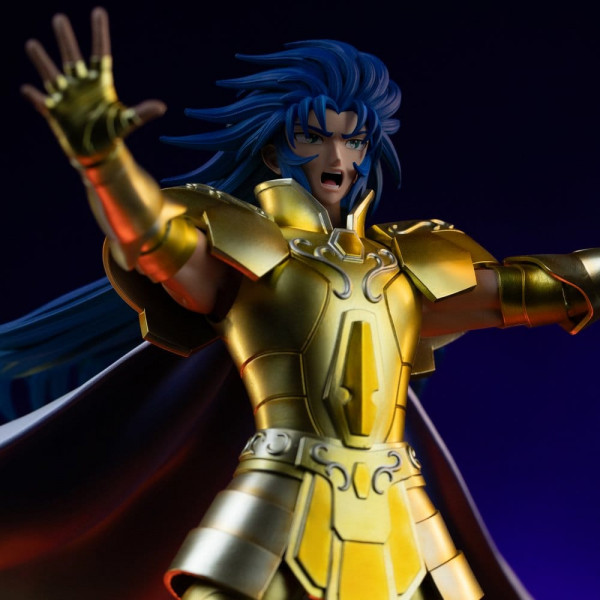 Gemini Saga è uno dei personaggi più complessi e potenti dell’universo di Saint Seiya. Il Cavaliere d’Oro dei Gemelli è riconosciuto per la sua straordinaria forza, la padronanza del Cosmo e la sua intelligenza strategica. La sua storia è segnata da un intenso conflitto interiore tra il bene e il male, risultato della sua personalità divisa. Mentre una parte della sua anima cerca di proteggere Atena e l’umanità, l’altra desidera il potere assoluto, ponendolo al centro di alcuni degli eventi più drammatici della saga. Tra le sue tecniche più famose ci sono Another Dimension e Galaxian Explosion, attacchi devastanti che dimostrano il suo immenso potere distruttivo. Include una testa extra con espressione alternativa.